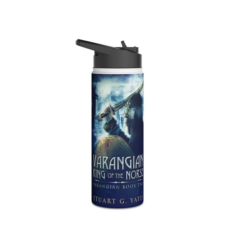 Quench your thirst in style with this 18oz stainless steel water bottle featuring a double-wall stainless steel build that keeps your drinks frosty for 24h and soothingly hot for 12h. This BPA-free, steel water bottle comes with a twist-on lid for easy sipping, making it excellent for daily use at work, at college, in the car, and beyond. The cover art in this water bottle is from Stuart G. Yates’s book, King of the Norse.