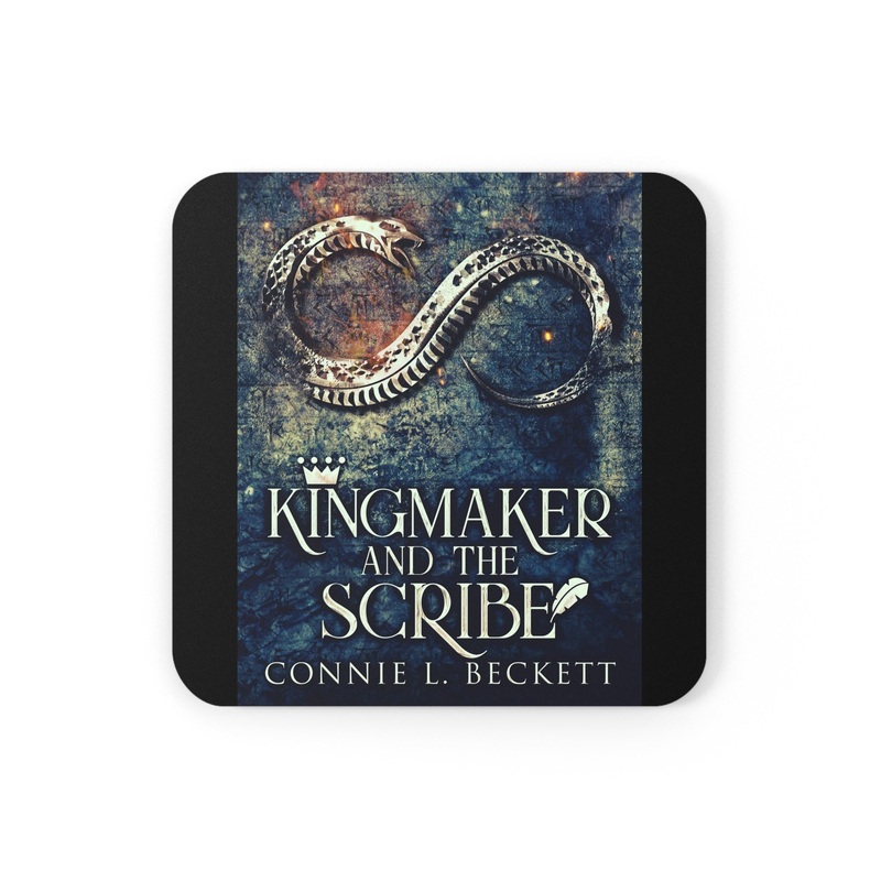 These coasters are made with a high-gloss top and feature a cork back to prevent sliding, and each order comes with a set of four coasters. The cover art in these coasters is from Connie L. Beckett’s book, Kingmaker And The Scribe.