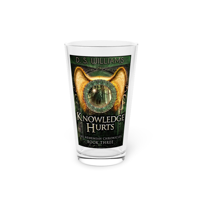 Nothing can replace a pint glass except for another pint glass. These long and transparent glasses are highly versatile, can make for a great housewarming gift, and are bound to be used in any household. The cover art on this pint glass is from D.S. Williams’s book, Knowledge Hurts.