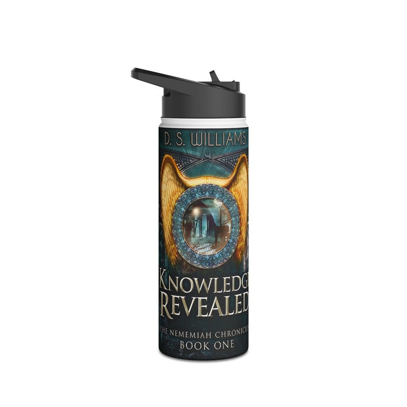 Quench your thirst in style with this 18oz stainless steel water bottle featuring a double-wall stainless steel build that keeps your drinks frosty for 24h and soothingly hot for 12h. This BPA-free, steel water bottle comes with a twist-on lid for easy sipping, making it excellent for daily use at work, at college, in the car, and beyond. The cover art in this water bottle is from D.S. Williams’s book, Knowledge Revealed.