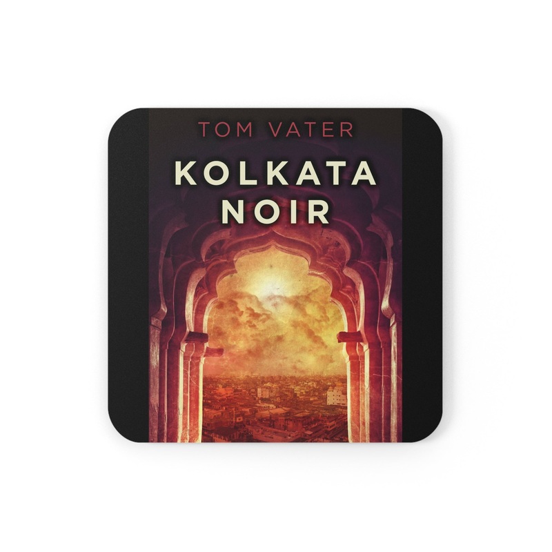These coasters are made with a high-gloss top and feature a cork back to prevent sliding, and each order comes with a set of four coasters. The cover art in these coasters is from Tom Vater’s book, Kolkata Noir.