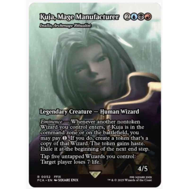 Eminence Whenever another nontoken Wizard you control enters, if Kuja is in the command zone or on the battlefield, you may pay. If you do, create a token that's a copy of that Wizard. The token gains haste. Exile it at the beginning of the next end step.T