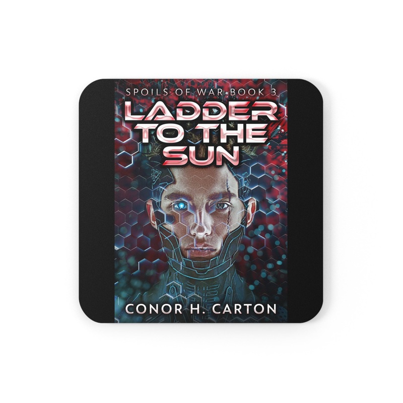 These coasters are made with a high-gloss top and feature a cork back to prevent sliding, and each order comes with a set of four coasters. The cover art in these coasters is from Conor H. Carton’s book, Ladder To The Sun.