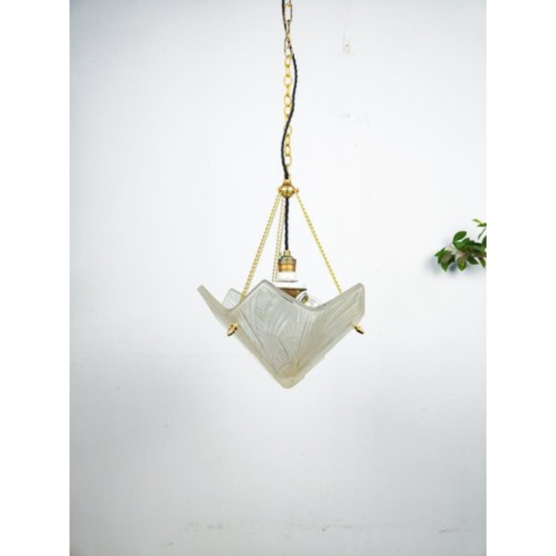 Beautiful large early art deco plafonnire pendant light by renowned French Art Deco designer Hettier & Vincent. This light comes with an antique triple split socket, so it can be used with 3 E27 lightbulbs.