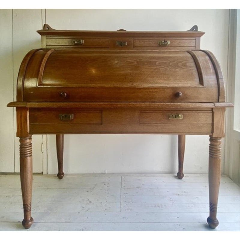 Large and elegant Antique fine Oak desk top, with extending leather working surface and Art Nouveau style details.