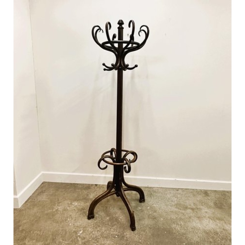 210cm high x crown is 58cm diameter x base is 73cm diameter Art Nouveau bentwood coat rack by Thonet, Vienna,Viennese coat stand by Thonet, he was included in the production program of the company Gebrder Thonet around the Year 1879. Original ‘Thonet’ stamped.Very rare and interesting finish, so-called rosewood. Original state.Excellent condition.Dimensions: 210cm high x crown is 58cm diameter x base is 73cm diameter.