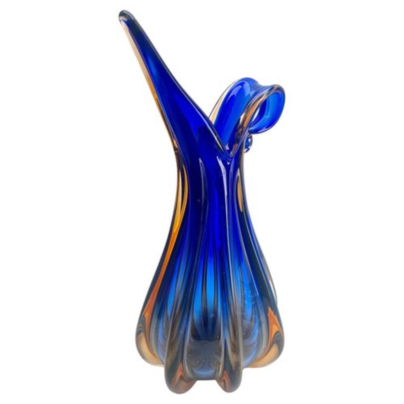 Attributed to Barovier & Toso this lobed vase is handcrafted with Cobalt core and Sommerso (colored outer layer), extending into the Colored glass collar which has a naturalistic leaf form, bringing elegance into your color scheme. Still in lovely condition The piece is in excellent condition and a real beauty! Weight 3.6 Kg