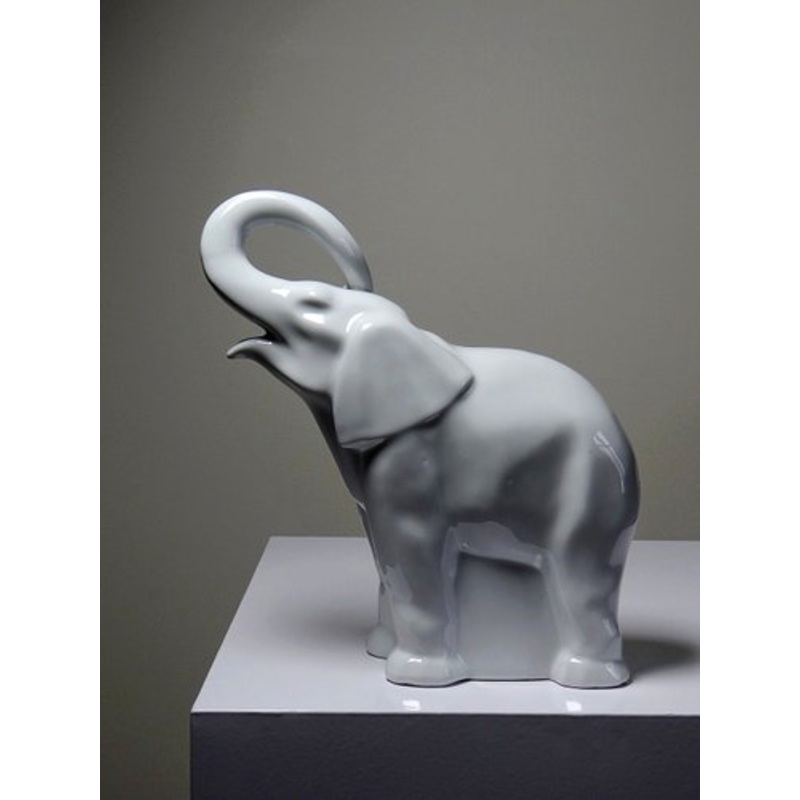 Very beautiful animal subject in fine Limoges porcelain, monochrome white, vintage 50s-60s, depicting a standing elephant, trunk in the air, trumpeting, mouth open, without tusks. Legs connected. Art deco style. 23.5cm max height, 19cm max length, 7.5cm max depth. Very good general condition, some very discreet cooking cracks, notably one under the base, not visible, no accidents. About 1kg.