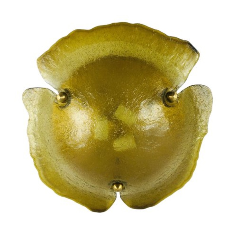 Stunning flower shaped ceiling light/flush mount from Peill & Putzler (Germany, 1970s). Rare flower design. Murano glass shade (thick green glass) with metal base. Spreads the light beautifully. Beautiful design and high quality.