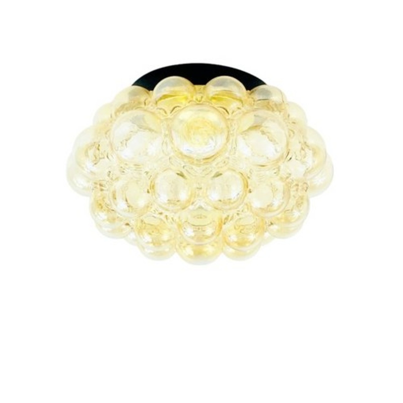 Large mid-century modern amber bubble glass ceiling mount fixture designed by Helena Tynell for Limburg (Germany, 1970s). Light amber/champagne colored hand blown bubble glass shade with metal base. Spreads the light beautifully (see pictures). beautiful design and high quality. Original label intact.