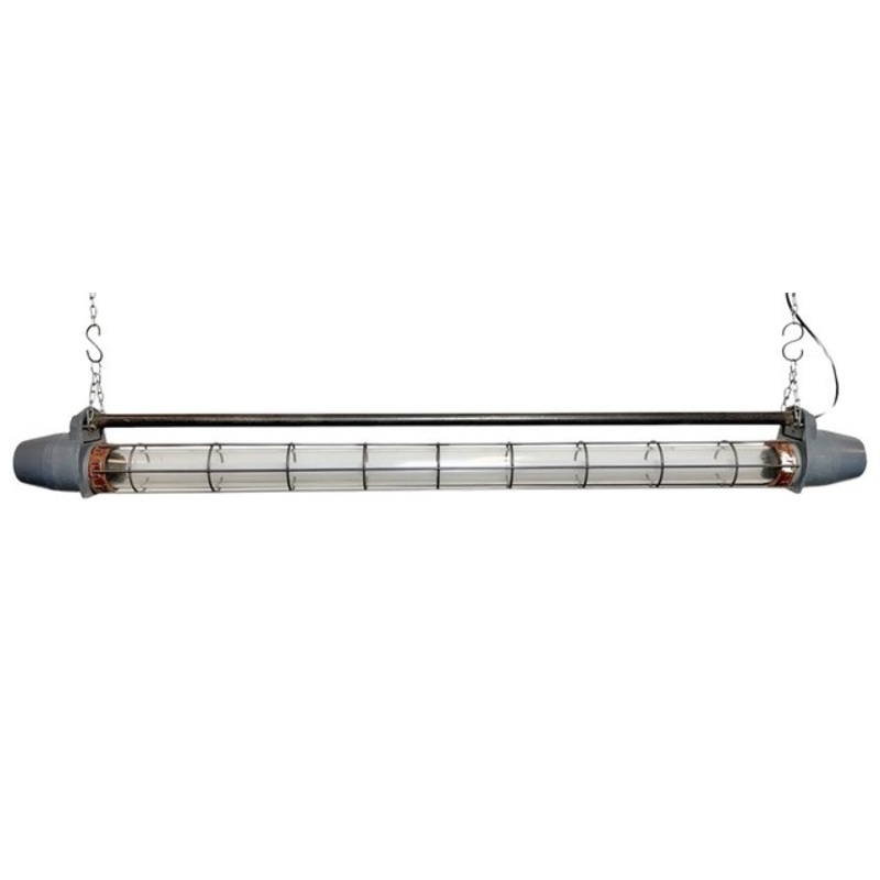 This grey industrial tube light was made in Ukraine in former Soviet Union during the 1970s. It is made of an aluminium, plastic glass and iron .The light is converted into one Led 120 cm T8 light tube.The weight of the lamp is 7 kg. The light tube is supplied with the light.