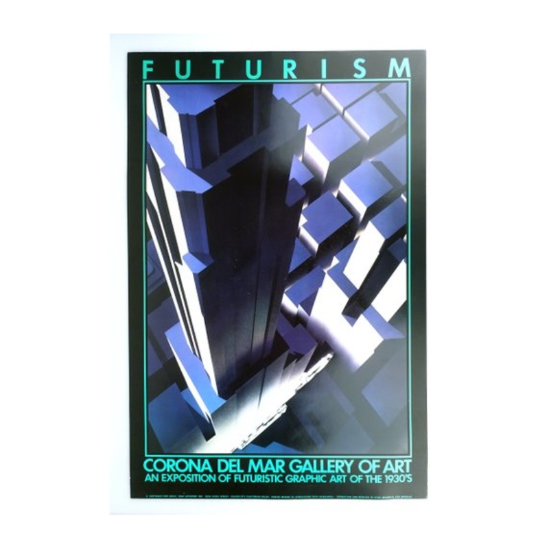 Vintage Art Deco style poster featuring a dramatic eagle s view rendering of an city with skyscrapers from the Corona del Mar Gallery, 1980s