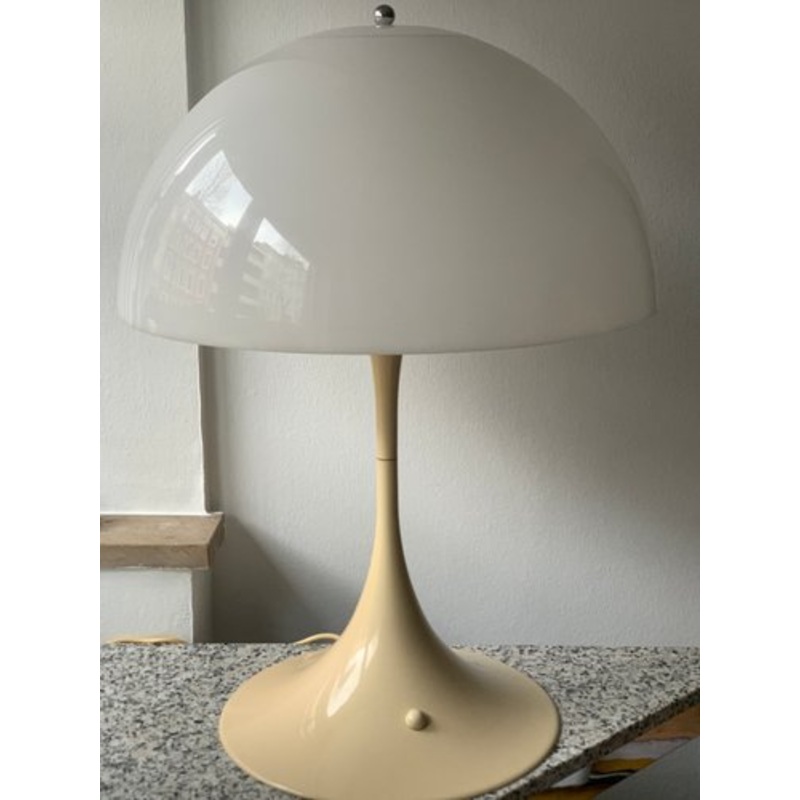 THE mushroom lamp by Verner Panton in very good vintage condition.The white light is perfect for the modern home, where a touch or space age design will be awarded.Perfect as a desk lamp on a sideboard or beside the bed.Height: 70 centimetersWidth: 50 cent