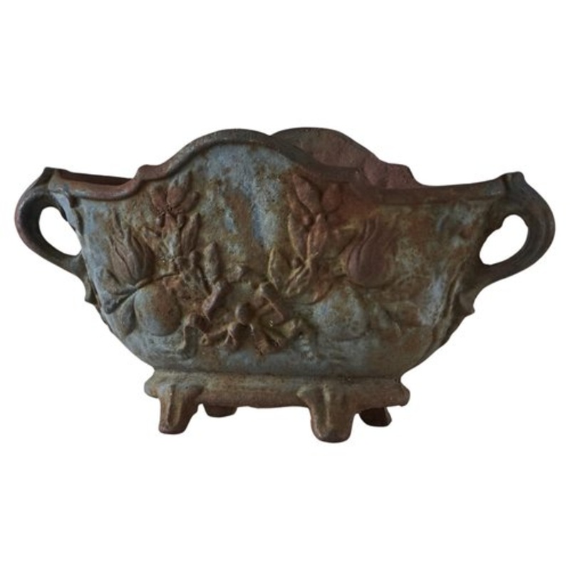 Elegant Jardinire in Patinated and Rusted Cast Iron, Europe, Late 19th Century. This is just a wonderfully patinated jardinire or planter in cast iron. Great colors and rusted patina, which gives this piece a well lived appearance and appeal. A practical a