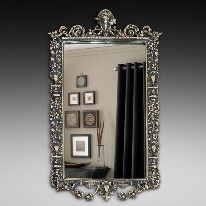 Late Victorian cast brass wall mirror of foliate surround and Minerva Head pediment - 12''w x 22''hDateline of this antique is Victorian Height is 56cm (22.0inches) Width is 30cm (11.8inches) Depth is 1cm (0.4inches) Production Period Before 2010 Style Vin