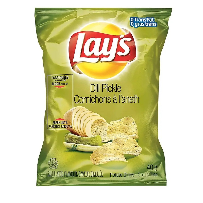 Crunch into the tangy twist of LAYS Dill Pickle Chips! These 40g packs deliver a perfect bite of crispiness with a zesty dill pickle punch. Whether youre snacking solo or sharing the fun, each chip offers a playful burst of flavor that keeps your taste bud