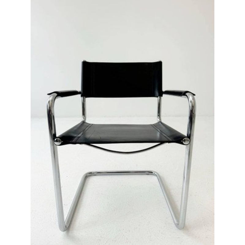 This classic MG5 cantilever chair by Matteo Grassi from the 1970s is a timeless masterpiece. The black saddle leather and chrome-plated frame give the chair a stylish and modern look.