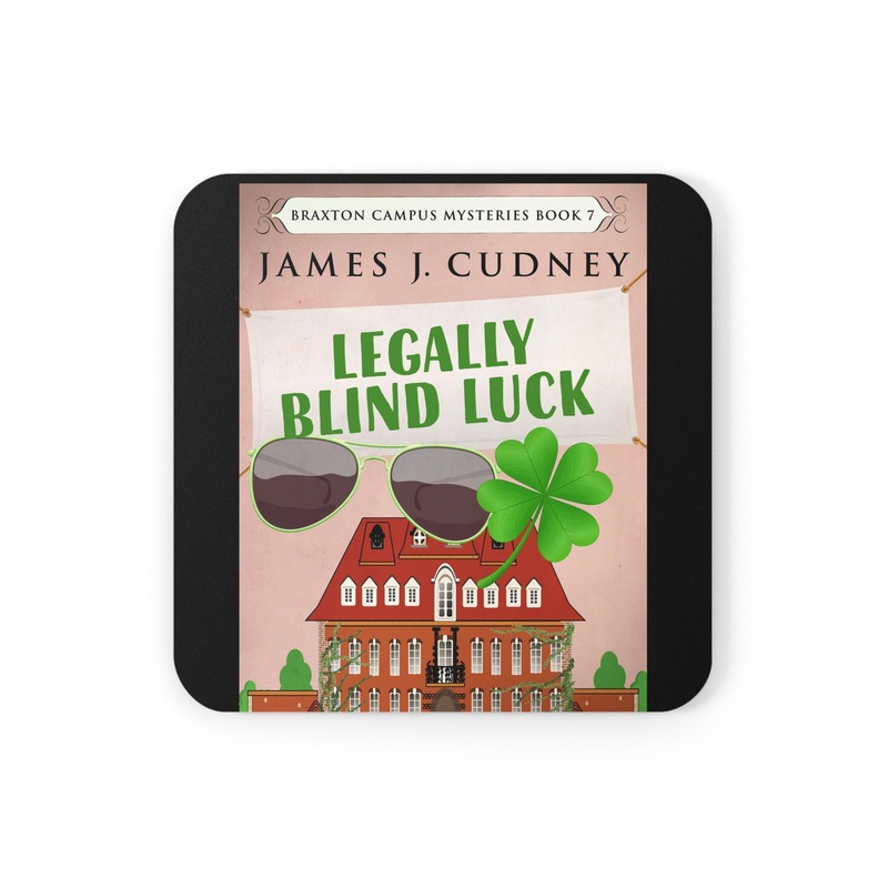 These coasters are made with a high-gloss top and feature a cork back to prevent sliding, and each order comes with a set of four coasters. The cover art in these coasters is from James J. Cudney's book, Legally Blind Luck.