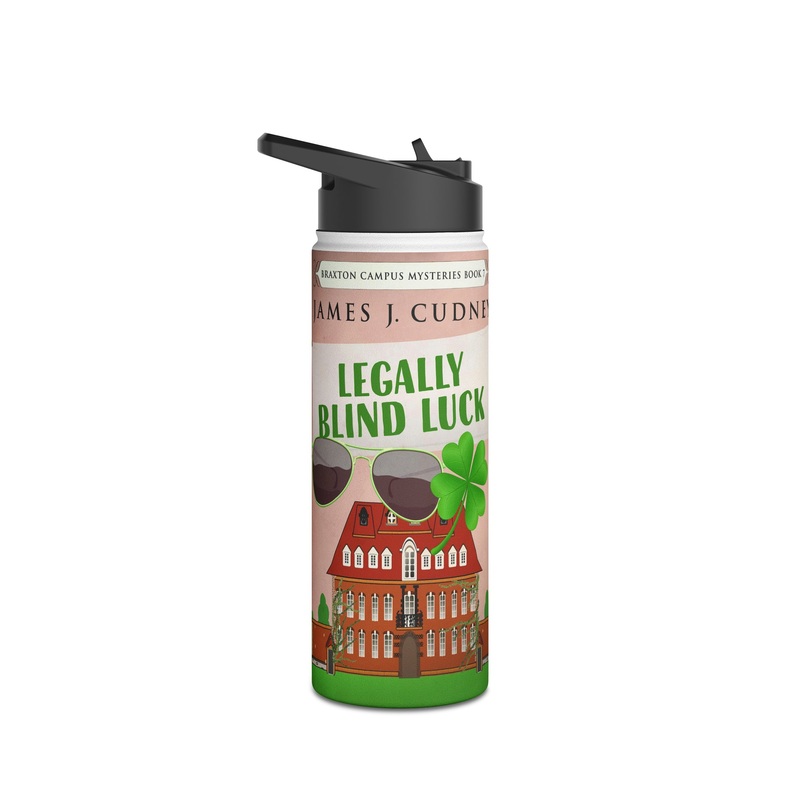 Quench your thirst in style with this 18oz stainless steel water bottle featuring a double-wall stainless steel build that keeps your drinks frosty for 24h and soothingly hot for 12h. This BPA-free, steel water bottle comes with a twist-on lid for easy sipping, making it excellent for daily use at work, at college, in the car, and beyond. The cover art in this water bottle is from James J. Cudney’s book, Legally Blind Luck.