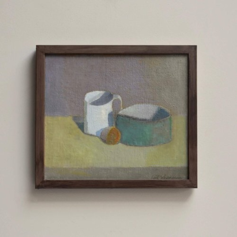 Beautiful signed oil on board by Swedish artist Leif Johansson (b. 1950). A still life with vessels and fruit, reminiscent of Giorgio Morandi Period 1950 to 1959 Production Period 1950 to 1959 Style Modernist Detailed Condition Good This vintage/antique it