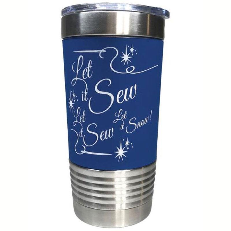 Let It Sew Blue Leather Tumbler