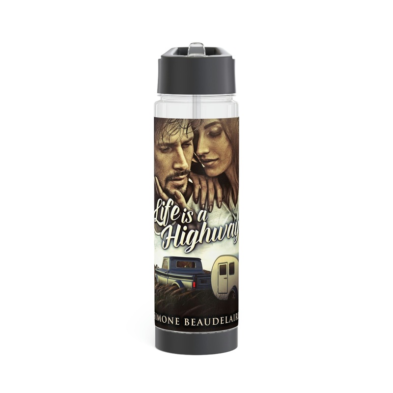 Add flavor and personality to your water with this infuser bottle. Twist the base off to access the infuser and add fruits, tea leaves, or anything you desire to enhance the flavor of your water. On the top, you’ll find a twist-on lid with a flip-top drinking sprout for a seamless drinking experience. This infuser is excellent for using at home, during outdoor excursions, or at the gym as a sports bottle. The cover art in this infuser water bottle is from Simone Beaudelaire’s book, Life Is A Highway.