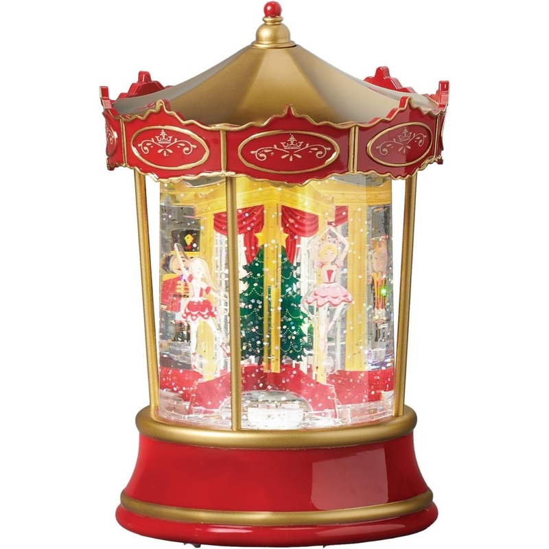 Bring holiday magic to your home with the Lighted Swirl Nutcracker Ballet Rotating Carousel Snow Globe. Standing 8 inches tall, this enchanting decoration features beloved Nutcracker Ballet characters gracefully rotating inside a classic carousel. Internal