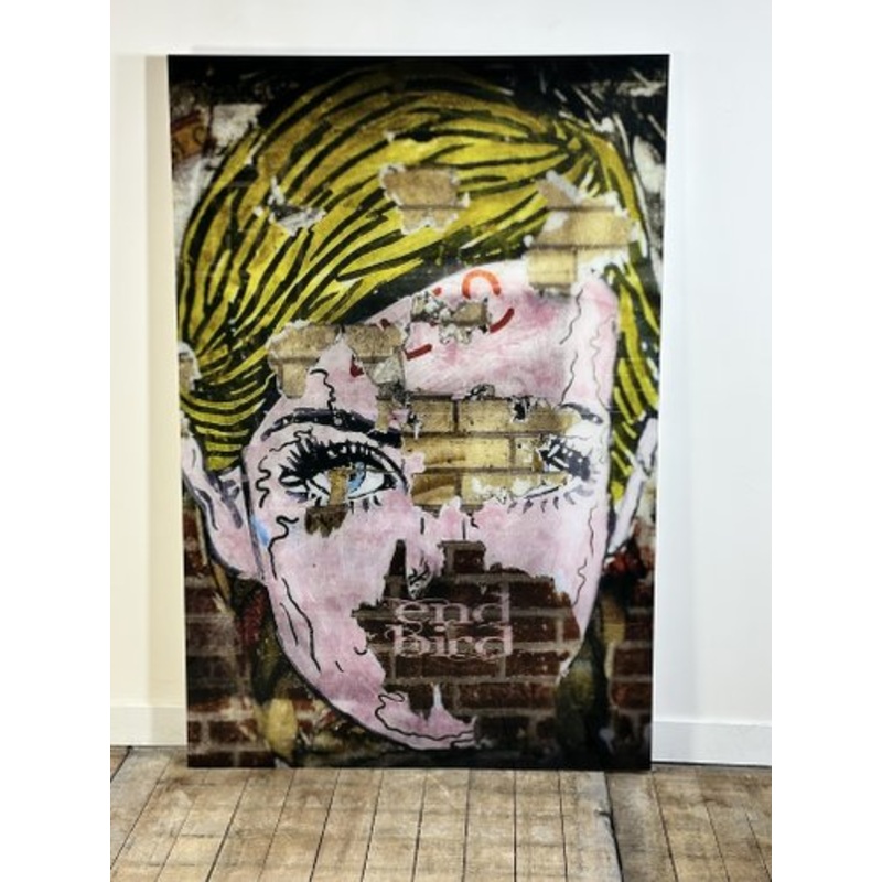 Pop Part decorative panel painting representing a face on a concrete block wall. Large format.Name: Ta bouche by Lionel Brient (numbered and signed) Dimensions 150x100 cm. Very good conditionFrame for attachment to the back. Period From 2000 Year 2016 Prod