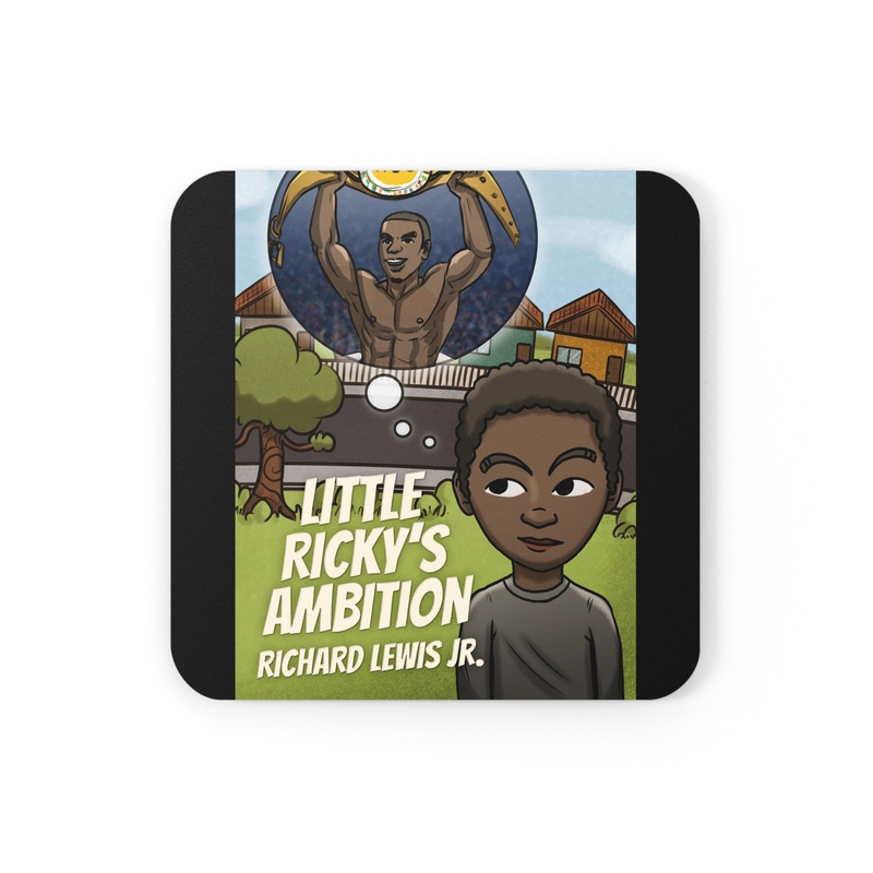 These coasters are made with a high-gloss top and feature a cork back to prevent sliding, and each order comes with a set of four coasters. The cover art in these coasters is from Richard Lewis Jr.’s book, Little Ricky’s Ambition.