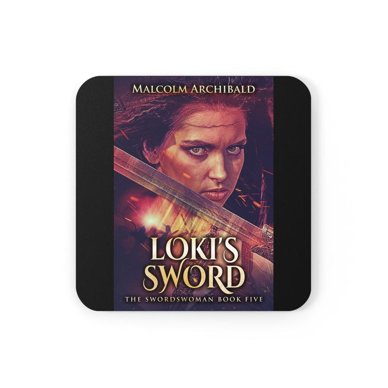 These coasters are made with a high-gloss top and feature a cork back to prevent sliding, and each order comes with a set of four coasters. The cover art in these coasters is from Malcolm Archibald's book, Loki's Sword.