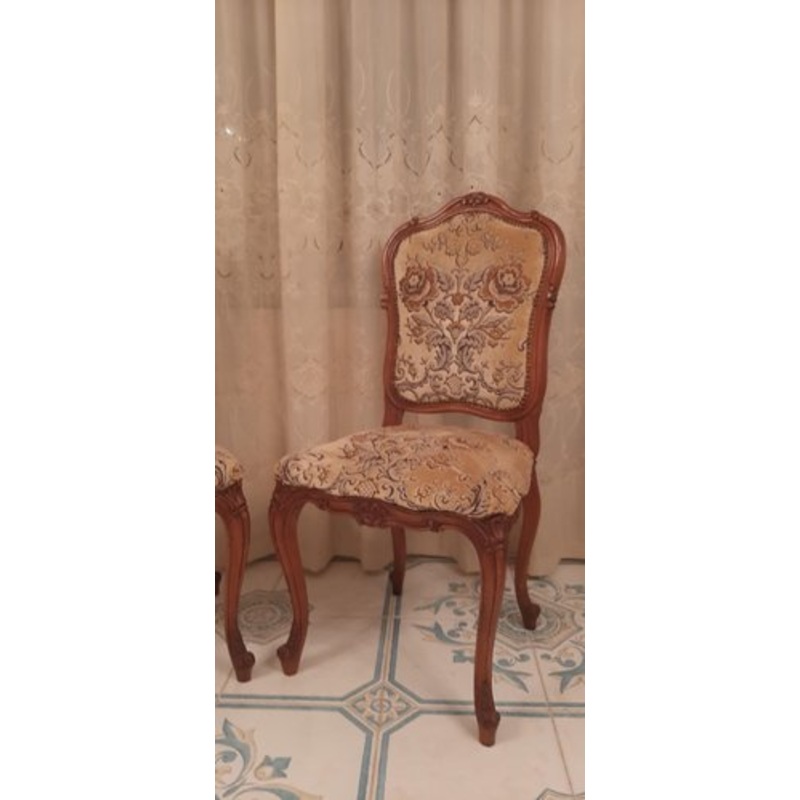 Handmade wooden chair, antique Venetian brocade fabric, Louis XV style, brown, very elegant in perfect condition.