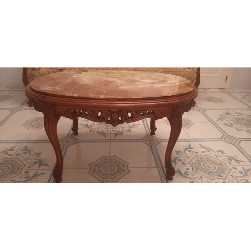 Louis XV style coffee table in carved wood with top in fine marble.