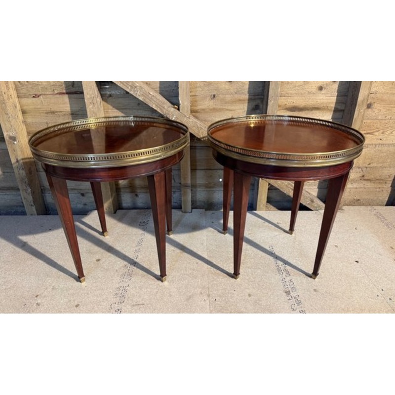 A beautiful quality pair of Round Mahogany Ftench Louis XVI Lamp Tables. Top quality brass galleries and feet and in overall excellent original condition for the home.Height 52.5 cmDiameter 50.5 cm Design Period 1920 to 1949 Year 1920 Production Period 192