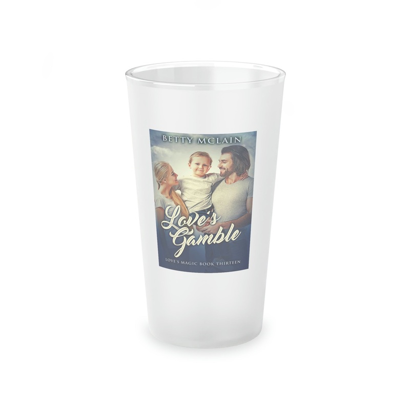 This frosted matte finish pint glass is versatile and dishwasher-safe. The cover art in this pint glass is from Betty McLain’s book, Love’s Gamble.
