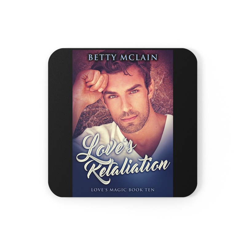 These coasters are made with a high-gloss top and feature a cork back to prevent sliding, and each order comes with a set of four coasters. The cover art in these coasters is from Betty McLain’s book, Love’s Retaliation.