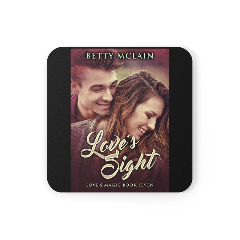 These coasters are made with a high-gloss top and feature a cork back to prevent sliding, and each order comes with a set of four coasters. The cover art in these coasters is from Betty McLain’s book, Love’s Sight.