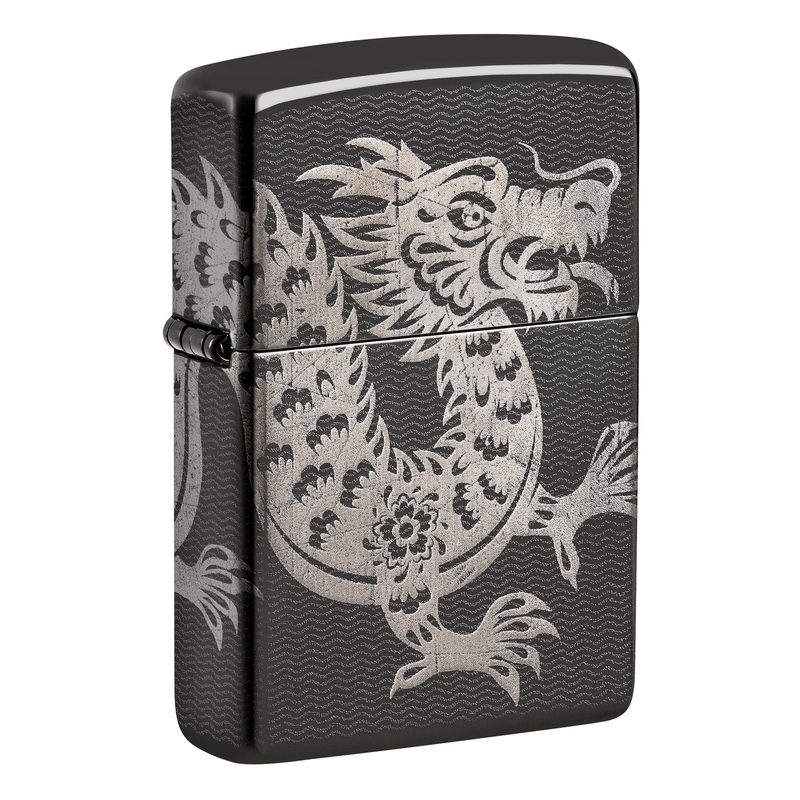 Symbolizing power, fortune and transformation, a traditional dragon is laser-engraved onto this classic Merlot lighter. Comes packaged in a gift box. For optimal performance fill with Zippo lighter fuel. Genuine Zippo windproof lighter with distinctive Zip