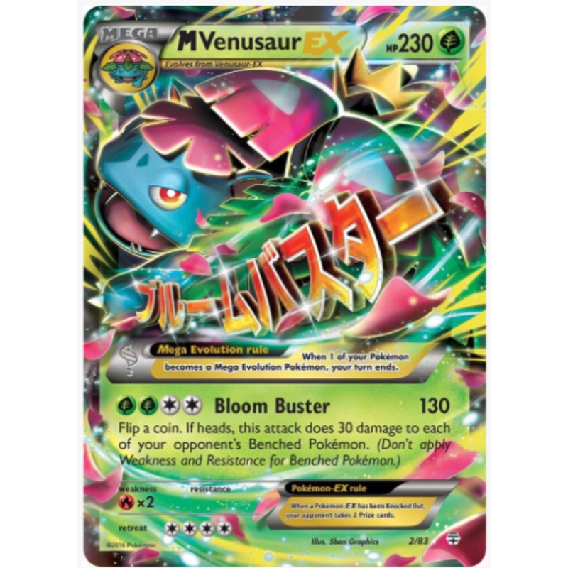 Card Number / Rarity:2/83 / Ultra RareCard Type / HP / Stage:Grass / 230 / MegaAttack 1:[2GG] Bloom Buster (130)Flip a coin. If heads, this attack does 30 damage to each of your opponent's Benched Pokemon.(Don't apply Weakness and Resistance for Benched Po