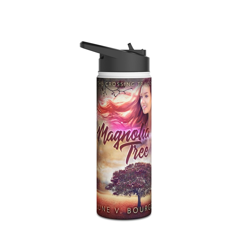 Quench your thirst in style with this 18oz stainless steel water bottle featuring a double-wall stainless steel build that keeps your drinks frosty for 24h and soothingly hot for 12h. This BPA-free, steel water bottle comes with a twist-on lid for easy sipping, making it excellent for daily use at work, at college, in the car, and beyond. The cover art in this water bottle is from June V. Bourgo’s book, Magnolia Tree.