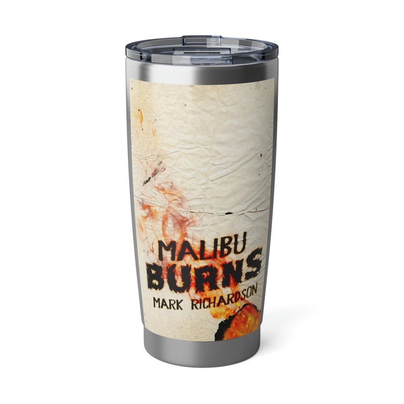 Minimize your plastic footprint with style. This tumbler fits perfectly into car cup holders, and the rubber gasket makes it spill-resistant on bumpier roads. The double-wall insulation makes sure drinks stay at the right temperature until the next pit stop. The cover art in this 20 oz tumbler is from Mark Richardson’s book, Malibu Burns.
