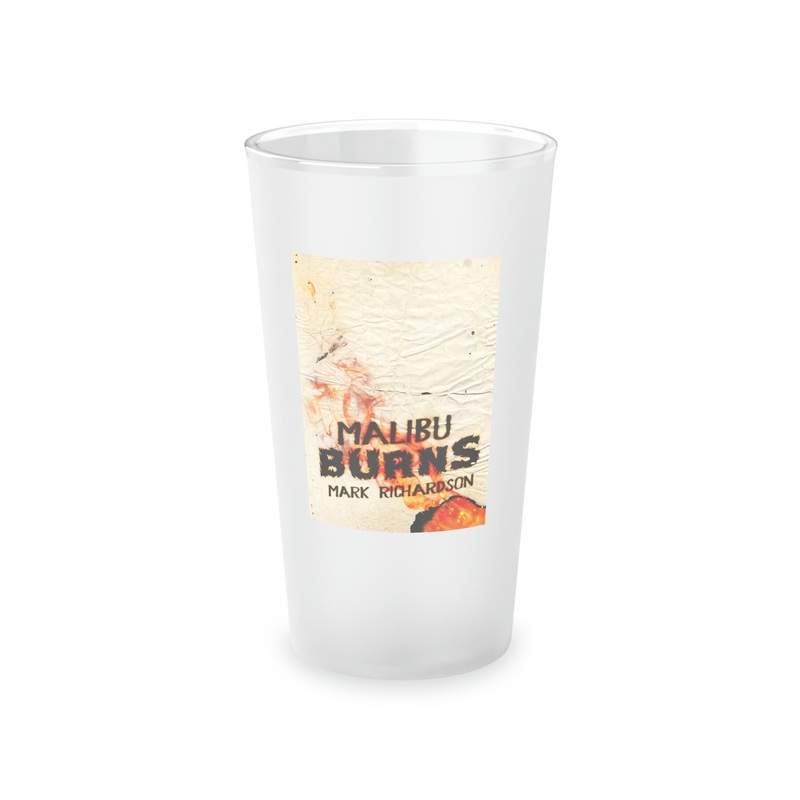 This frosted matte finish pint glass is versatile and dishwasher-safe. The cover art in this pint glass is from Mark Richardson’s book, Malibu Burns.