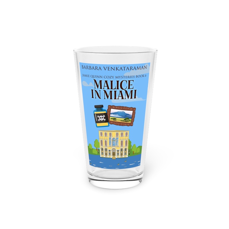 Nothing can replace a pint glass except for another pint glass. These long and transparent glasses are highly versatile, can make for a great housewarming gift, and are bound to be used in any household. The cover art on this pint glass is from Barbara Venkataraman’s book, Malice In Miami.