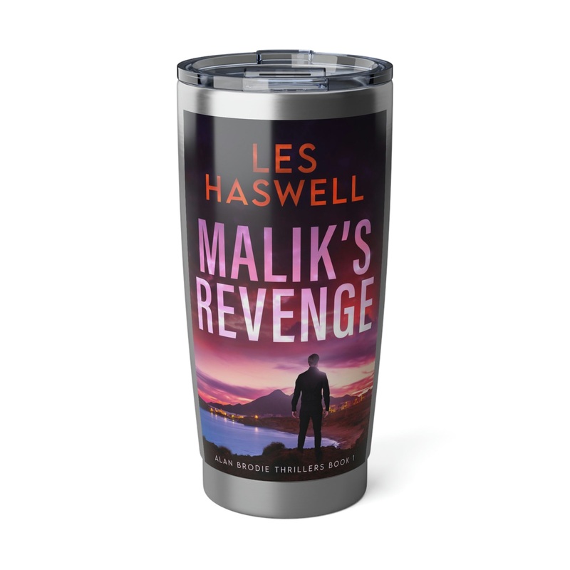 Minimize your plastic footprint with style. This tumbler fits perfectly into car cup holders, and the rubber gasket makes it spill-resistant on bumpier roads. The double-wall insulation makes sure drinks stay at the right temperature until the next pit stop. The cover art in this 20 oz tumbler is from Les Haswell’s book, Malik’s Revenge.