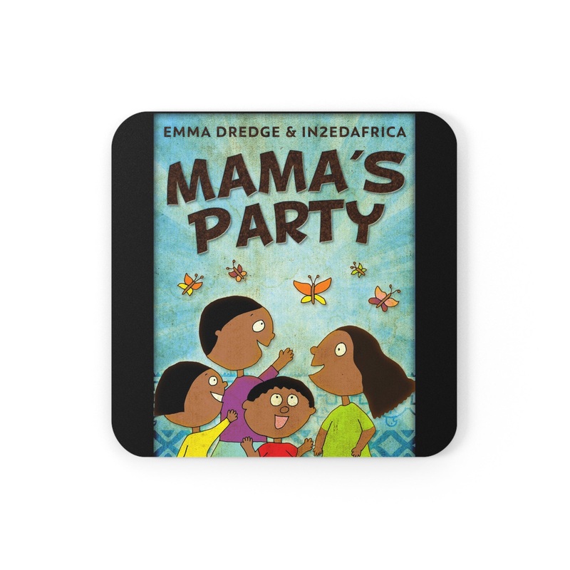 These coasters are made with a high-gloss top and feature a cork back to prevent sliding, and each order comes with a set of four coasters. The cover art in these coasters is from Emma Dredge’s book, Mama’s Party.