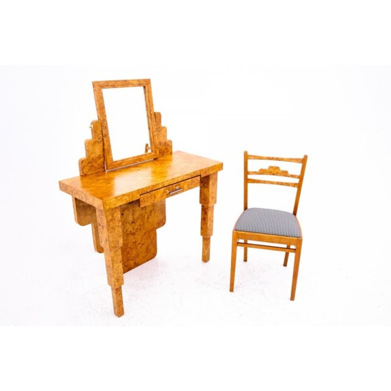 Mid-20th Century Art Deco Dressing Table with Chair, Poland, 1950s, Set of 2 for sale at Pamono