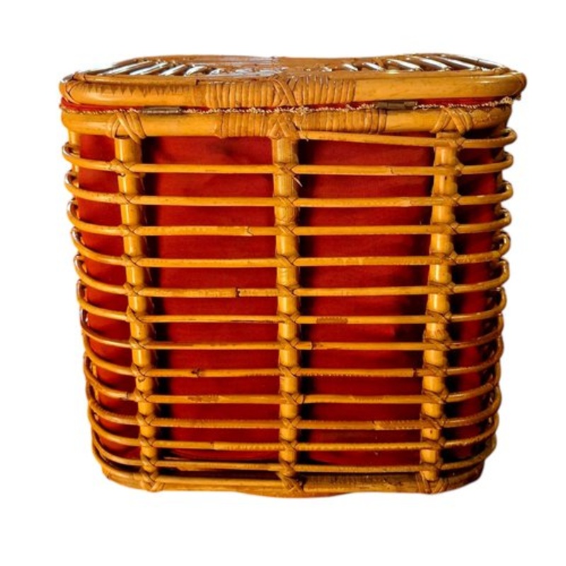 Bamboo and rattan basket from the 1950s, internally lined with original red fabric. In perfect condition, there is no breakage in the bamboo weave. Ideal as a container for objects and considering its beauty and charm from times gone by, it can be placed in any room of the house.