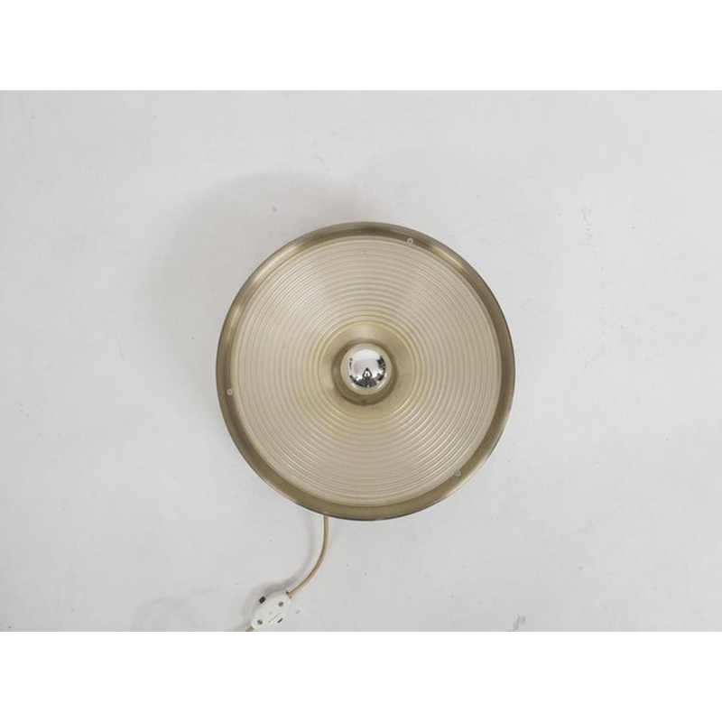 About this item Gold metal ceiling or wall light with plastic diffuser. The lamp uses on eE27 light bulb. Manufacturer Dijkstra Production Period 1960 to 1969 Country of Manufacture Netherlands Identifying Marks This piece is attributed to the above-mentio