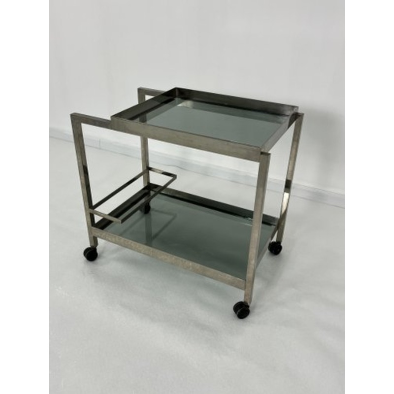 Mid-century chromed metal bar cart, smoked glass tops, 1960s
