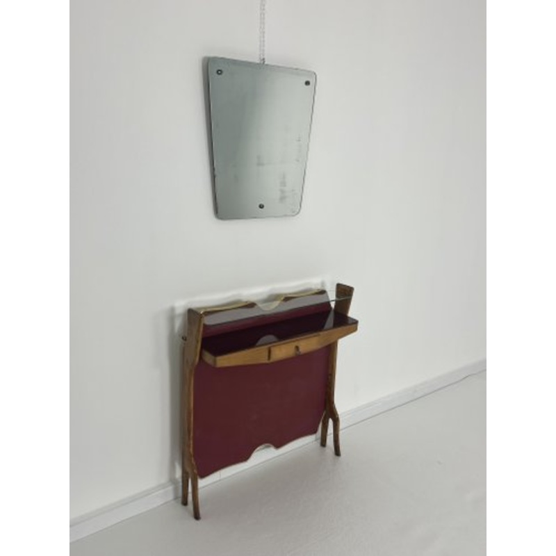 Mid-century Italian console and mirror, 1950sIntact and in good condition. from slight restoration.Glass top.The console measures 81 cm wide, 22 cm deep and 87 cm high.The mirror is 60 cm high and 53 cm wide. Design Period 1950 to 1959 Production Period 19