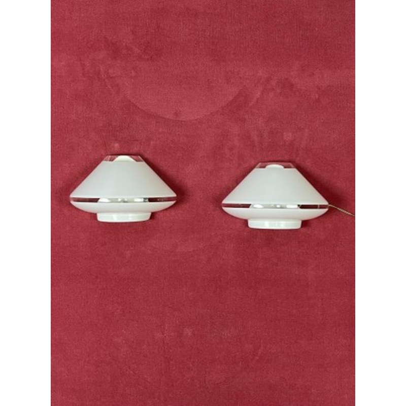 Set of 2 Mid-Century Italian Murano glass wall lamps, 1960s.Metal structure, E14 lamps.Glasses intact.Good condition. Design Period 1960 to 1969 Production Period 1960 to 1969 Country of Manufacture Italy Style Vintage, Mid-Century Detailed Condition Good